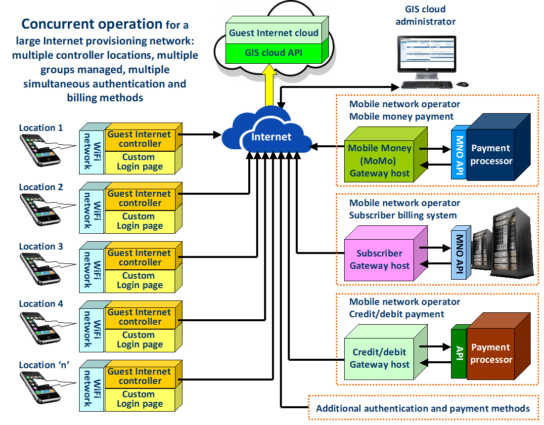 The Guest Internet gateway advanced product technology features provide flexibility for any type of public WiFi Internet application